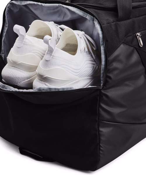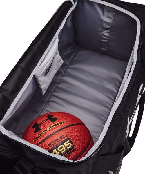 UA Storm technology delivers an element-battling, highly water-repellent finish. Tough, PU-coated and foam-lined bottom and side panels for added durability and structure. Dual water bottle slip pocket. Large vented pocket for laundry or shoes and internal slip pockets for organisation. Large front zipped organisation pocket and molle webbing attachment points. Removable, padded, HeatGear® shoulder strap easily stows away in side pocket. Padded top grab handle. Dimensions when full: 14.5"W x 14.1"H x 29.5"L .